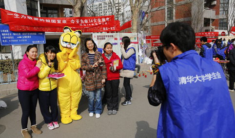 清华新闻网3月8日电(研通社记者 王皓冉)3月7日女生节当天,清华男生各显其能,用“爱”与“创意”为清华女生们献上一份份“特殊”的礼物。