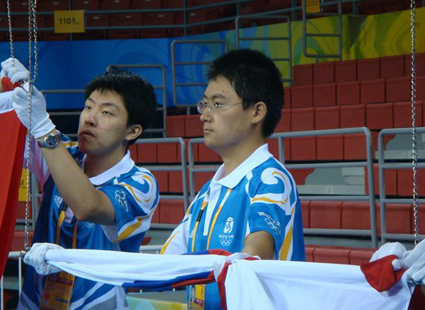 入学伊始一次很偶然的机会,身为国旗仪仗队队员的戎戈,被选拔参加“好运北京”测试赛,担任旗手志愿者。历经长达半年百余场测试赛的锻炼,戎戈于2008年5月被正式确认为北京奥运会旗手志愿者,将在奥运会期间承担18场颁奖仪式的升旗任务。他和队友们通力协作,最终以“零失误”的标准出色地完成了任务,为清华争得了荣誉,他本人也被评为“北京奥运会优秀志愿者”。