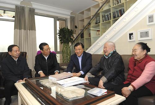 30日上午,刘云山来到著名建筑学家、中国科学院院士、中国工程院院士吴良镛家中,关切询问吴良镛的身体、生活和工作情况,对他长期以来在建筑学教学、科研、实践方面作出的卓越成就深表敬意,对他“一辈子干好一件事”的潜心钻研精神深表钦佩。吴良镛介绍了他耗时十年、九易其稿从事中国人居史科学研究的情况,还就推进我国城镇化提出了要重视建筑领军人才培养,城市总建筑师、总规划师、总设计师队伍建设和城市管理者素养提升等三个方面的建议。