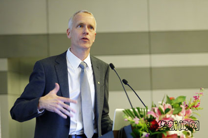 图为布赖恩·科比尔卡为清华师生作学术报告。研通社记者 王皓冉 摄