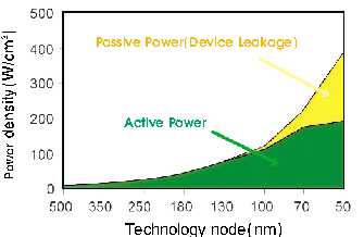 图2.功耗是摩尔定律的最大障碍。现代芯片处理器消耗100瓦的功率,其中20%浪费在晶体管栅极的泄露中。
